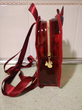 Mochila con estampado de Mickey y Minnie Mouse. Nunca usada.