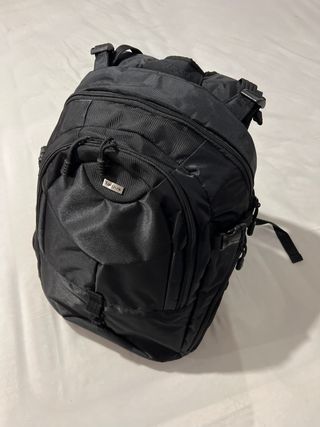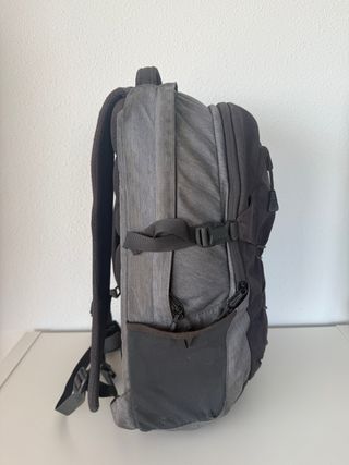 Tiene 6 bolsillos en la parte delantera, dentro del bolsillo grande hay otro más, y detrás de la mochila hay otro (bastante disimulado) Y tiene para poner la botella en los dos lados Me costó 60 euros la pongo a 20 pero el precio está negociable