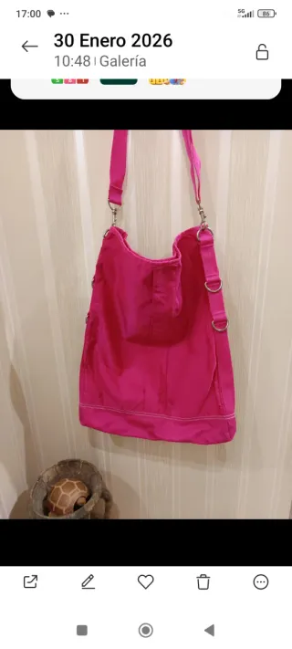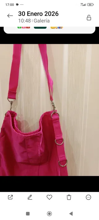 Bolso de nylon sin estrenar, con un diseño moderno y práctico. - Material: Nylon. - Color: Rosa. - Cierre: Cremallera. - Correa ajustable.