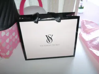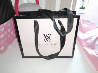 Bolsa de la marca Victoria's Secret. - Diseño con el logo de la marca. - Asas de cinta negra.
