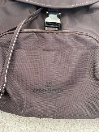 Mochila de la marca Gerry Weber en color marrón. - Cierre principal con cordón ajustable. - Bolsillo frontal con cremallera. - Hebilla decorativa en la parte superior, ligeramente rayada.