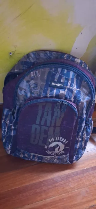 Mochila escolar de la marca Tandem con un diseño llamativo. - Compartimento principal espacioso. - Bolsillo frontal con cremallera. - Correas ajustables para mayor comodidad.