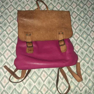 Mochila Cuero Marrón y Rosa