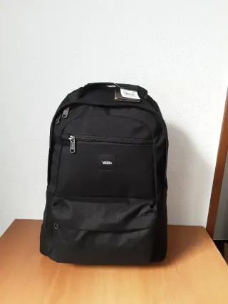 No negocio precio ni hago envios puedo entregar en mano en Laredo y Avilés. Mochila de la marca Vans con un diseño moderno y funcional. - Compartimento principal espacioso y apertura superior para facilitar la carga. - Bolsillo frontal con cremallera. - Correas ajustables para mayor comodidad. - Confección en tejido cordura que ofrece una mayor durabilidad y resistencia. = Bolsillos laterales para botella de agua. =Capacidad 28 litros. =Dimensiones alto 50 cm ancho 30 cm y fondo 11 cm.