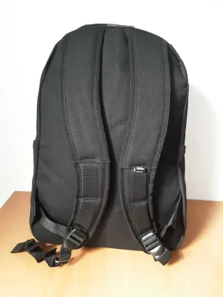 No negocio precio ni hago envios, puedo entregar en mano en Laredo y Avilés. Mochila de la marca Vans en color negro. Diseño moderno y funcional. - Compartimento principal espacioso. - Bolsillo frontal con cremallera. - Correas ajustables para mayor comodidad. = Funda interior acolchada para portátil. - Funda interior para calzado. -Dos bolsillos laterales con cremallera. = Parte trasera con malla reticular. = Capacidad 27 litros.