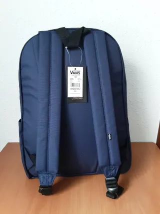 No negocio precio ni hago envios puedo entregar en mano en Laredo y Avilés. Mochila de la marca Vans en color azul. Perfecta para el día a día o para llevar tus pertenencias. - Diseño clásico con el logo de Vans. - Compartimento principal espacioso. - Bolsillo frontal adicional. =Bolsillo lateral. =Capacidad 22 litros. -Funda interior que se adapta para la mayoría de portátiles de 15".