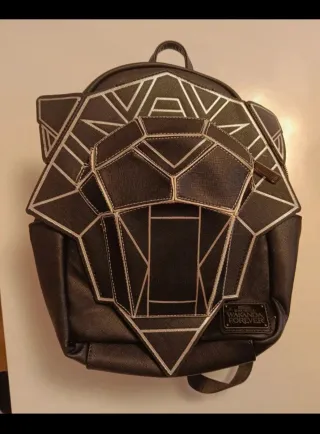 Mochila con diseño inspirado en Black Panther de Marvel. - Detalles geométricos plateados. - Cierre de cremallera. - Parche de Black Panther Wakanda Forever en la parte inferior.