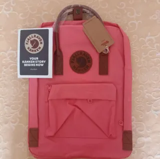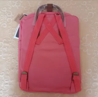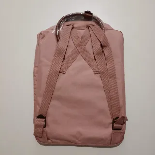Mochila Fjallraven Kanken en color rosa palo con asas de cuero. Medidas: 38 × 27 × 13 cm. Volumen: 16 L. Sin estrenar