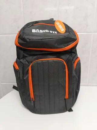 Mochila de la marca Basic-Fit con un diseño moderno y funcional. - Compartimento principal espacioso. - Bolsillo frontal con cremallera. - Bolsillos laterales de malla. - Tirantes acolchados ajustables.