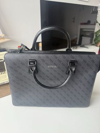 Maletín de la marca Guess con un diseño moderno y elegante. - Estampado con el logo de la marca. - Asa de mano y correa para hombro. - Compartimento principal amplio.