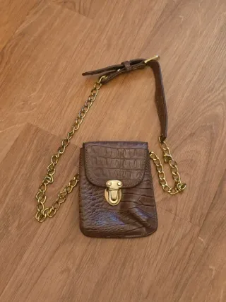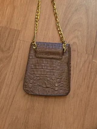 Mini Bolso Piel Marrón Cocodrilo Cadena Dorada