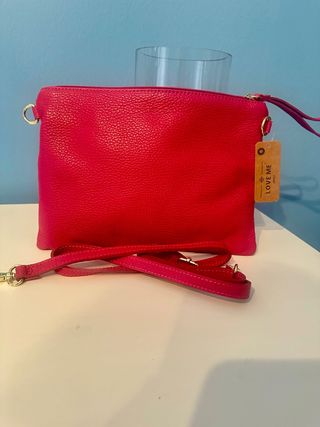 Elegante bolso cartera de piel con un vibrante color fucsia. Perfecto para llevar tus esenciales con estilo. - Material: Piel genuina. - Cierre de cremallera. - Correa desmontable que permite llevarlo de bandolera 28 x 19 Perfecto para regalo