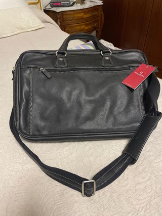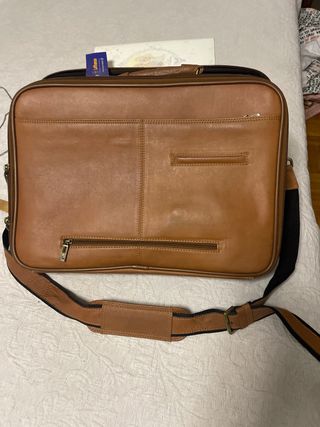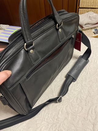 Maletín de piel de la marca Hexagona Paris. - Diseño elegante y funcional. - Asa de mano y correa ajustable para hombro. - Compartimentos interiores para organización. - Se puede sujetarlo a la asa extensible de una maleta de visje. - genuine leather