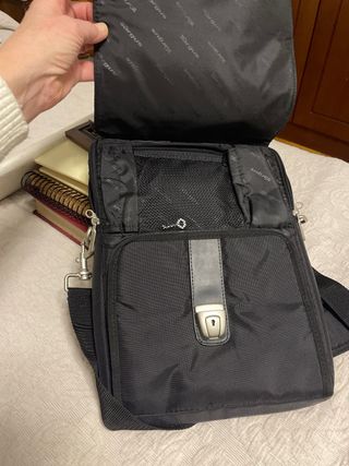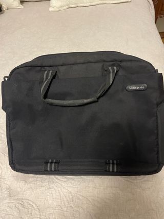 Maletín de la marca Samsonite en color negro. Diseño funcional y elegante. - Asas de mano reforzadas. - Correa de hombro ajustable. - Compartimento principal espacioso. - Bolsillo exterior con cremallera. - pequeño y ligera