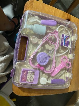 Maletín de doctor muy completo para niños a partir de 3 años. Incluye varios accesorios para jugar a ser médico. - Incluye estetoscopio, jeringuilla, tijeras y más. - Diseño moderno y elegante. - Fabricado en China.
