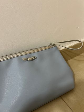 Bolso de mano o neceser con un diseño elegante y un detalle de lazo metálico. - Cierre de cremallera. - Asa de mano. - Acabado texturizado.