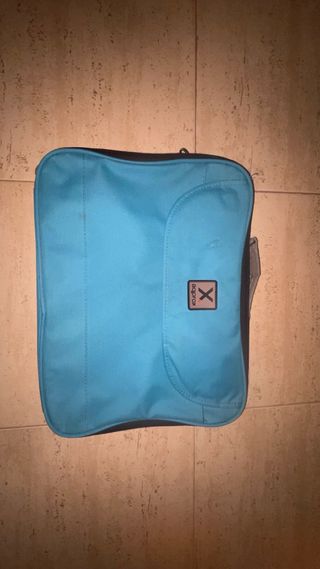 Funda para portátil de color azul con un diseño moderno. - Compartimento principal acolchado. - Cierre con cremallera. - Asa de transporte. - Logo de la marca aproX.