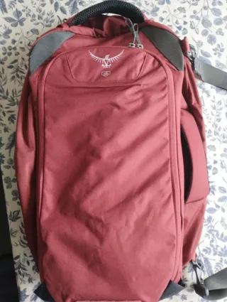 Mochila Osprey Farpoint 40 en color rojo. Se ha usado 5 veces, literal. - Diseño versátil y funcional. - Compartimento principal espacioso. - Bolsillos laterales de malla. - Correas de compresión ajustables.