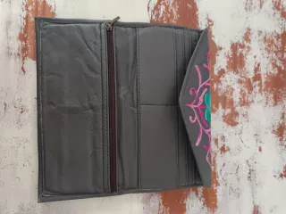 Monedero gris con bordado floral