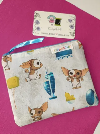 Monedero-Tarjetero con estampado de Gizmo, de los Gremlins. - Diseño propio, confeccionado de forma artesanal, hecho a mano con todo detalle. - Parte delantera de temática Gremlin. - Cierre de cremallera. - Parte trasera en loneta color turquesa. - 2 compartimentos interiores para tarjetas. - Forro por dentro en algodón. - Tamaño exterior: unos 15cm de ancho X 12cm de alto. Más productos en mi perfil y en Instagram @cuquidoll