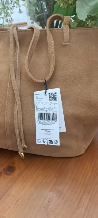 Bolso Mango Suede Beige Nuevo con Etiqueta