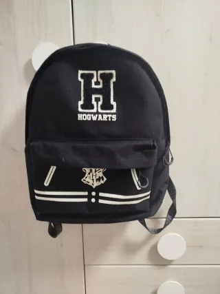 Mochila negra con el escudo y las iniciales de Hogwarts. - Diseño inspirado en la escuela de magia. - Compartimento principal y bolsillo frontal. - Correas ajustables para mayor comodidad.