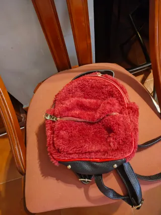 Mochila con un diseño llamativo y textura suave. - Material exterior de pelo sintético. - Cierre de cremallera frontal. - Asas ajustables.