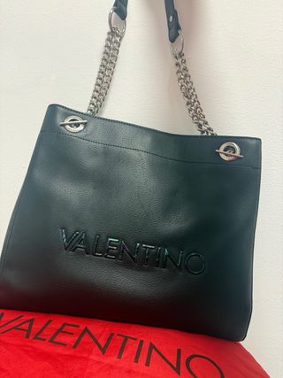 Bolso de mano o de hombro con el logo de Valentino en relieve. - Asa de cadena metálica. - Cierre de imán. - Interior espacioso. - Tiene pequeños arañazos en la parte delantera.