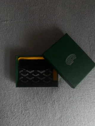Tarjetero de la marca Goyard. - Diseño elegante en color negro y verde. - Acabado texturizado.
