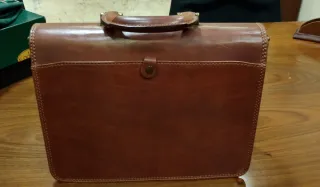 Maletín de cuero artesanal con un diseño clásico y robusto. Ideal para llevar tus pertenencias con estilo. - Material: Cuero genuino. - Costuras reforzadas. - Hebillas metálicas. Precio negociable