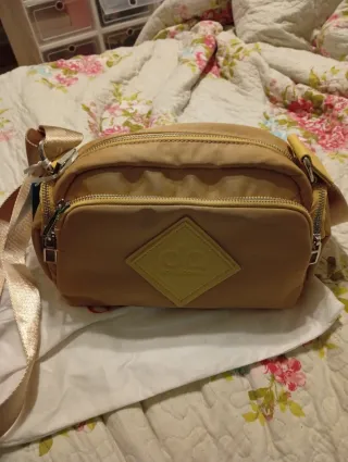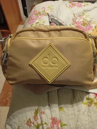Bolso bandolera de la marca Don Algodón. - Color beige y detalles dorados. - Cierre con cremallera.