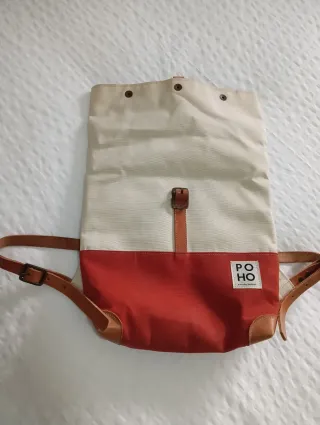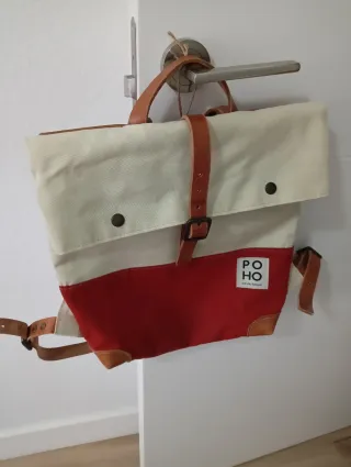 Mochila POHO cuero beige y rojo