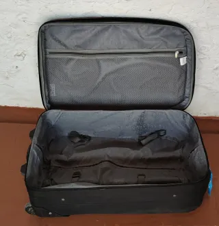 Dispone de barras de aluminio para limitar las zonas de apoyo y dejar respirar la espalda, un interior compartimentado y 5 bolsillos. Tiene un peso de 1,6kg y medidas de 58x26x25 cm Sólo se ha ausado en un viaje,está un poco manchada por arriba.