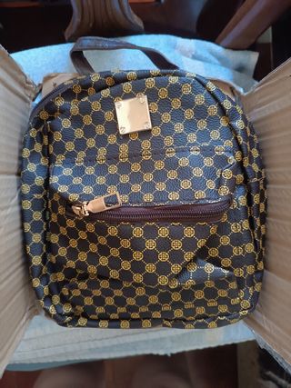 Preciosa mochila pequeña, ideal para el día a día. Es de color marrón y amarillo, con un diseño elegante y discreto. - Tiene un compartimento principal con cierre de cremallera. - Asa superior para llevarla en la mano. - Correas ajustables para llevarla a la espalda. - Está en perfecto estado, sin usar. - son dos mochilas de ese mismo color. 5 euros cada una.