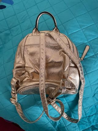 Mochila pequeña con un diseño acolchado y moderno. - Acabado mate. - Cierre de cremallera. - Detalle metálico dorado en la parte frontal.
