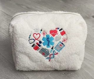 Neceser blanco con un encantador bordados diversos y totalmente personalizados. - Material exterior blanco. - Cierre de cremallera.