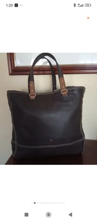 Bolso de piel de Purificación García, marrón chocolate nuevo , asas,base esquinas ,en perfecto estado está nuevo , interior forrado en perfecto estado, con tres departamentos, el central con cremallera, mide 35 ancho . Alto 34cm .fondo 14 cm .es elegante, piel de primerisima calidad, suave y de muy buena calidad.esta nuevo - Color marrón chocolate con detalles en dorado - Logo circular metálico en la parte frontal perfecto.