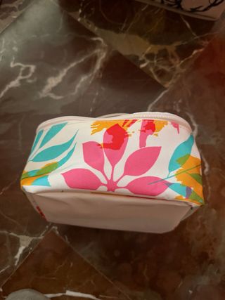 Pequeño neceser con un alegre estampado floral. - Diseño con hojas y flores en varios colores. - Cierre de cremallera.