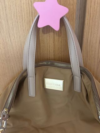 Bolso de la marca Bimba y Lola con un diseño elegante. - Color beige y detalles dorados. - Asa de mano cómoda.