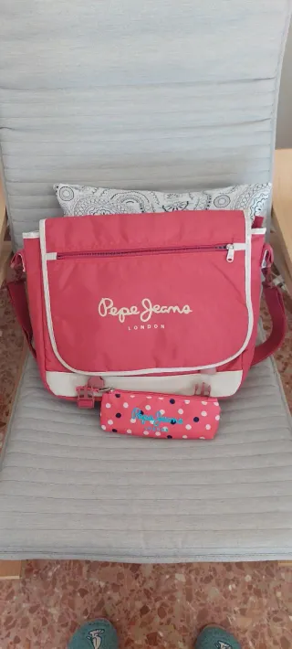 Conjunto de mochila y estuche a juego de la marca Pepe Jeans. - Mochila con cierre de cremallera. - Estuche con estampado de lunares.
