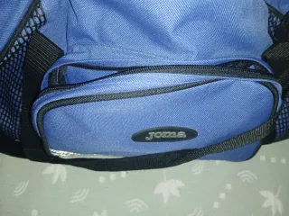 Se vende mochila para deporte de la marca Joma en color azul con reflectante. Casi sin uso. - Compartimento principal con cierre de cremallera y pequeño bolsillo interior. - Bolsillo frontal con cremallera. - 2 Bolsillos laterales. - Asas de mano y correa para hombro. Entrega o recogida en mano en Lugo o alrededores. Envío a cargo del comprador.