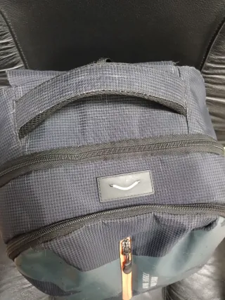 Mochila de Naylon, tamaño muy cómodo. Costó 59€. Tiene algún desgaste en el color de alguna cremallera como se aprecia en las fotos pero apenas se nota