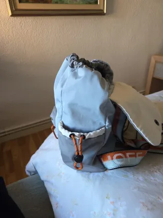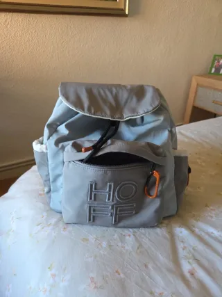 Mochila de la marca HOFF con un diseño moderno y práctico. - Color gris y azul. - Compartimento principal con cierre de cordón. - Bolsillo frontal con cremallera. - Dos bolsillos laterales. - Detalle de logo HOFF en relieve en el bolsillo frontal.
