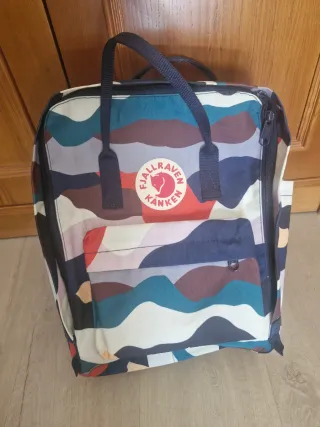 Mochila con un diseño llamativo y moderno. - Estampado multicolor. - Logo circular de la marca en la parte frontal. #fjallraven #kanken #chollo #barato