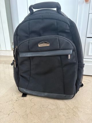 Mochila negra de la marca Faraway, con un diseño práctico y funcional. - Compartimento principal espacioso. - Bolsillo frontal con cremallera. - Asas acolchadas para mayor comodidad. - Bolsillos laterales de malla.