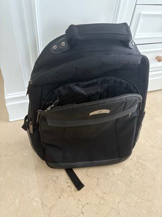 Mochila Samsonite con un diseño moderno y funcional. - Compartimento principal espacioso. - Bolsillo frontal con cremallera. - Correas de hombro ajustables y acolchadas. - Asa superior para colgar.
