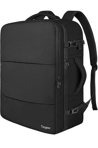 Mochila de viaje en color negro, diseñada para cabina de avión. - Dimensiones: 40x20x25 cm. - Compartimento principal con cremallera. - Bolsillo frontal con cremallera. - Asas de mano y correas de hombro ajustables.