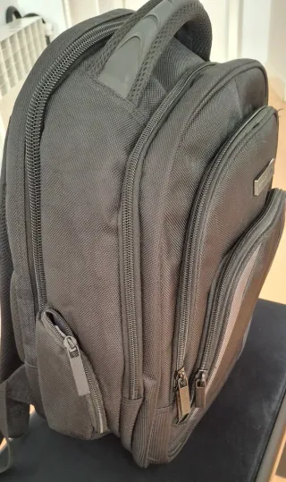 Mochila de viaje con diseño funcional, ideal para cabina de avión. - Compartimento principal espacioso. - Bolsillo frontal con cremallera. - Asas acolchadas y ajustables. - Asa de mano superior y lateral.