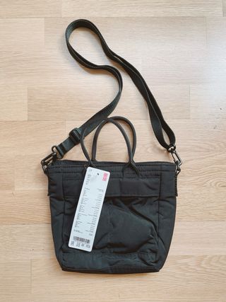 Bolso bandolera Mini Bag de Uniqlo. Color Negro. Práctico bolso multiusos en tamaño mini. Diseño reforzado de apariencia amplia con bolsillos en el exterior. El tratamiento hidrófugo protege de la lluvia ligera. Correa de hombro ajustable y extraíble. Todo el cuerpo está acolchado para ofrecer un tacto suave. Medidas: Ancho: 17cm, Altura: 19cm, Profundidad: 7.5cm, Bandolera: 78cm~138cm 🏷️ Product ID: 481364