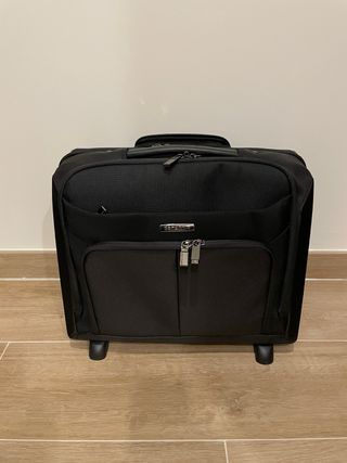 Maleta de cabina Samsonite en color negro. Perfecta para viajes de trabajo u ocio cortos - Diseño elegante y funcional - Compartimentos interiores organizados - Ruedas y asa extraible para facilitar el transporte - Medidas 44X26 cm. Alto 37 cm